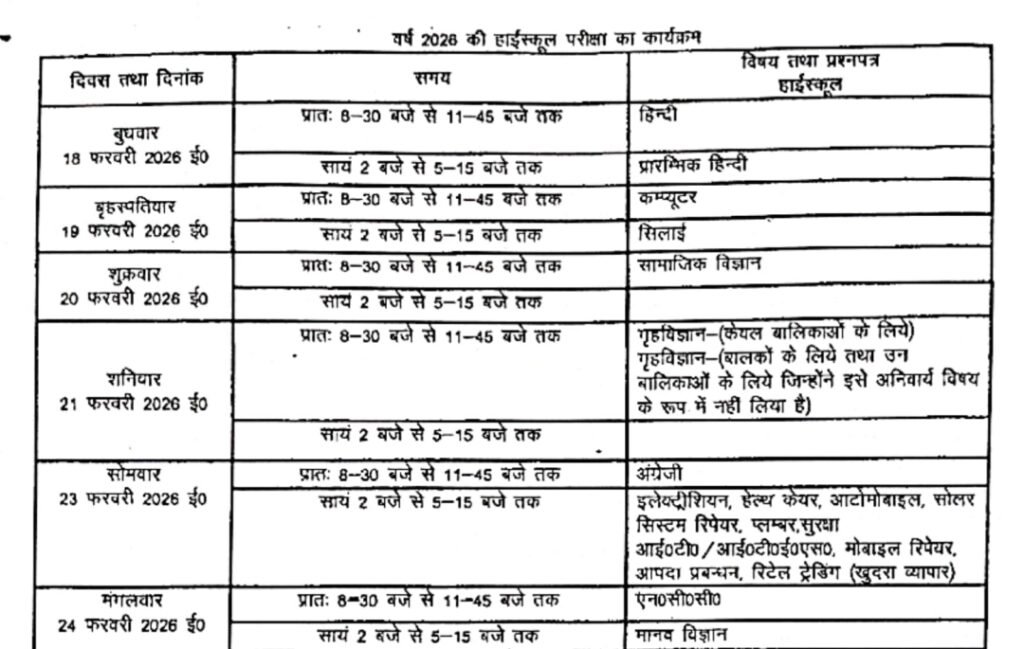 UP Board 10th / 12th Exam Timetable 2026 Out: Download Here