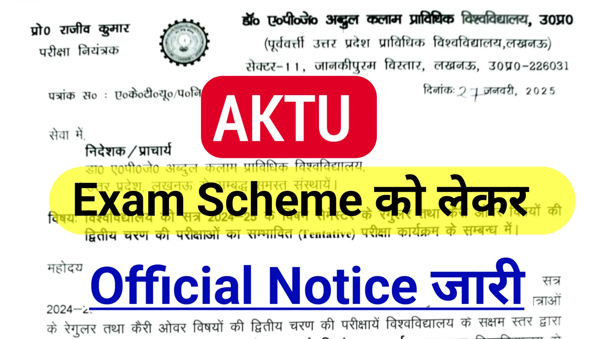 AKTU Exam Scheme Official Notice: नमस्कार! मेरा नाम विनय है। अभी-अभी AKTU की तरफ से एक Official Notice जारी किया गया है। यह नोटिस सत्र 2024-25 के विषम सेमेस्टर की रेगुलर और कैरी ओवर परीक्षाओं के द्वितीय चरण के संभावित परीक्षा कार्यक्रम से संबंधित है।