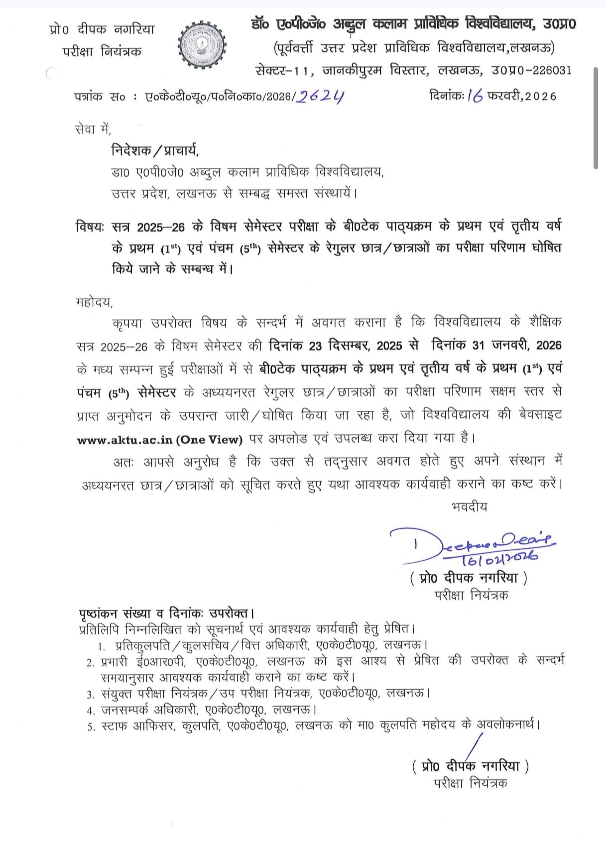 AKTU: The university/board has officially released an important notice related to AKTU Odd Semester Result 2026 Out on its official website. Students who are concerned with this update are advised to read the complete notice carefully.